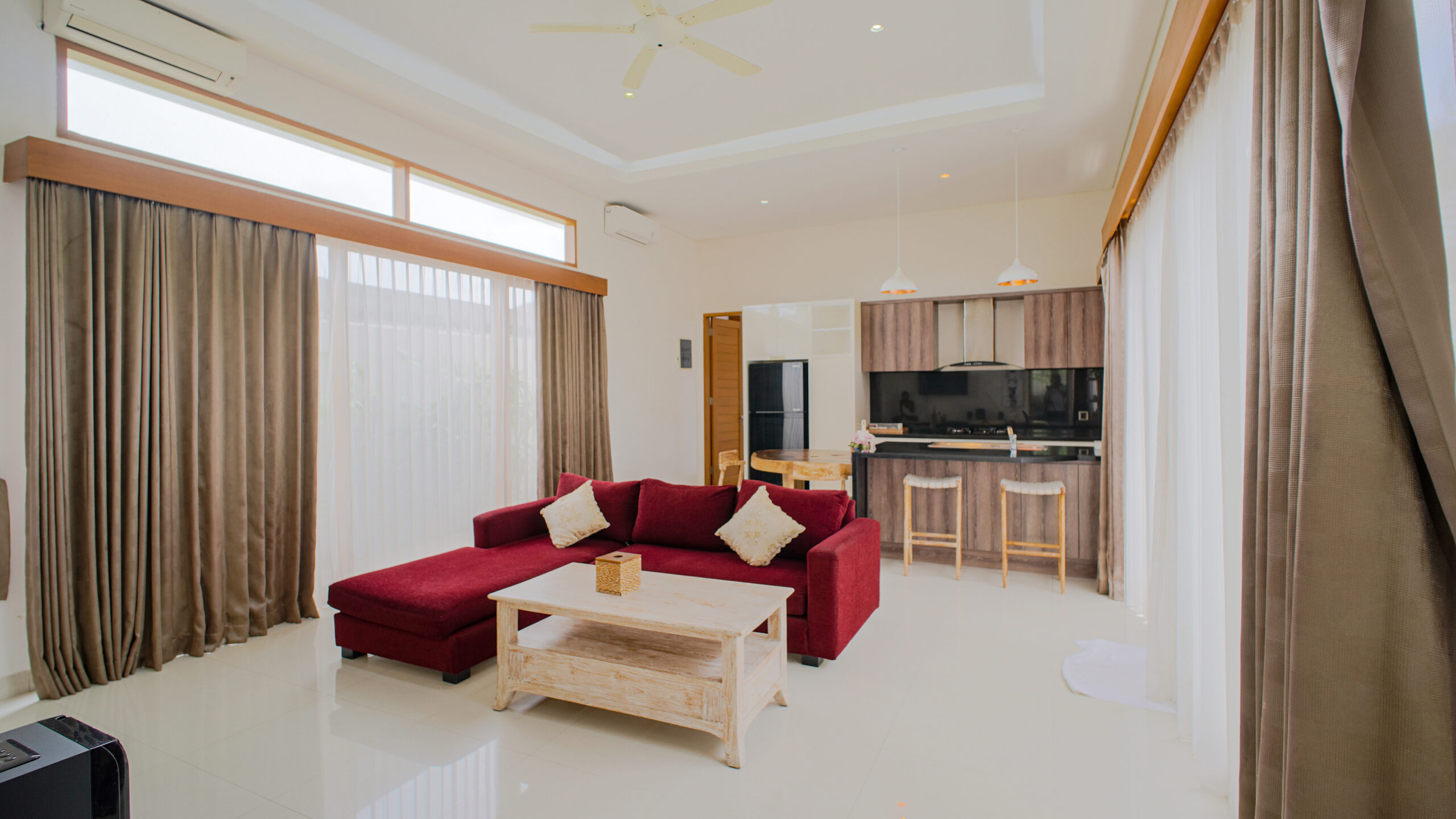 Located in a strategic area of Legian, this villa was built with longevity and quality in mind. This well-maintained 2-bedroom leasehold villa offers comfort and convenient access. The property is within walking distance to shops, restaurants, supermarkets, cafés, and other daily amenities, making it ideal for living or as a rental property. The villa is approximately 5 km from Legian Beach and easily accessible via a paved road about 5 meters wide, allowing convenient vehicle access. It also features a separate staff quarter or storage area, complete with one room, kitchen, and toilet, adding functionality and flexibility. The property comes fully furnished and has been successfully operating as a short-term rental, receiving great reviews and returning customers. The leasehold title is valid until November 2038, making it a ready-to-enjoy choice in Legian. Price : USD 180,000