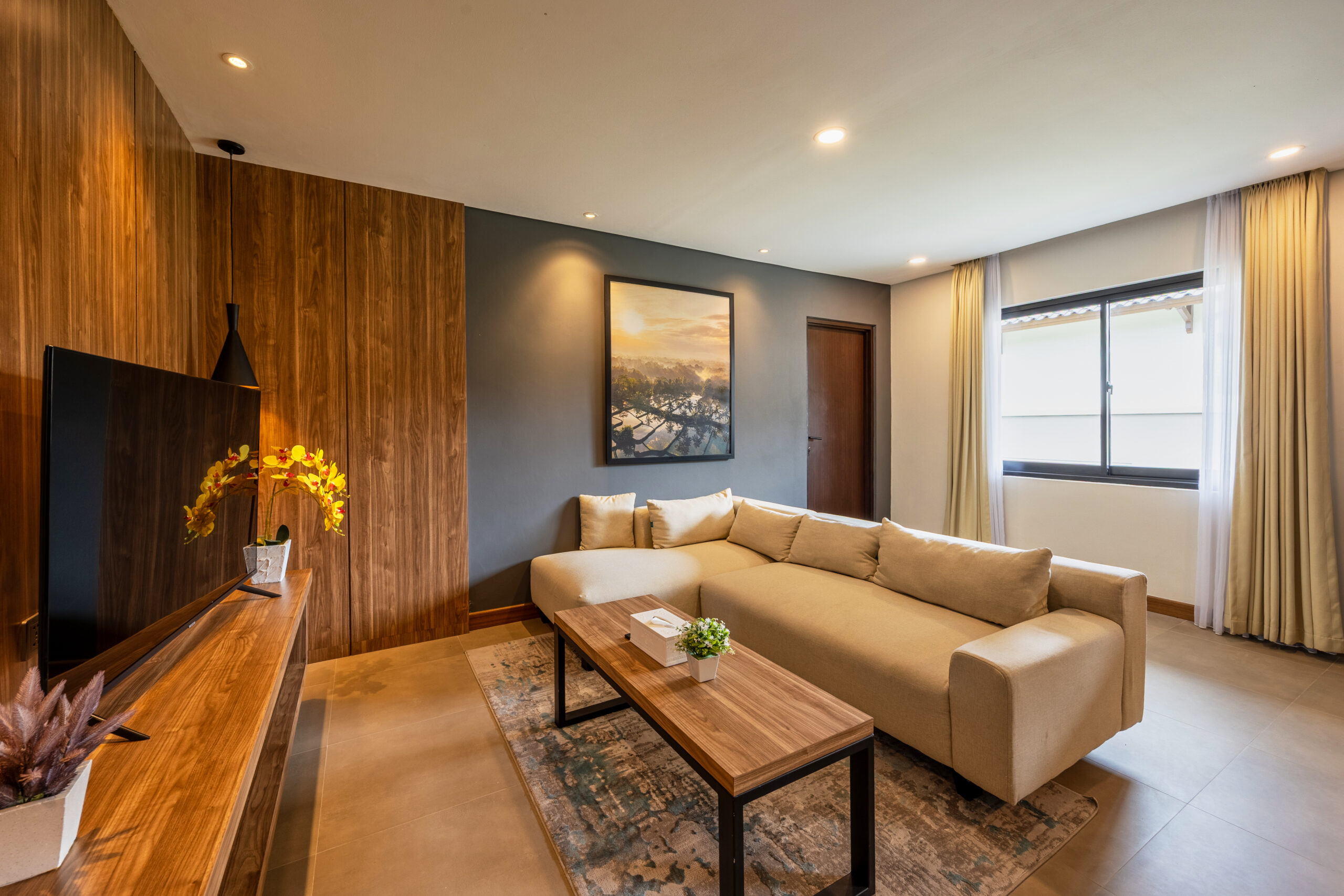 Our one-bedroom suite offers a generous 50 sqm living space, featuring 1 King bed or 2 single beds. This room type includes a separate living area with a sofa and table, and an extra bed can be easily accommodated. The balcony is surrounded by an evergreen tropical garden. The bedroom is furnished in a modern minimalist style and comes with a practical kitchenette. As part of an exclusive residence, residents also enjoy full facilities such as a spacious communal swimming pool, restaurant & lounge, jogging track, playground, parking area, and 24-hour security with CCTV and a one-gate system. The property is also equipped with high-speed WiFi, a water treatment system, and electricity backup to ensure maximum comfort. This property is available on a 20 to 30 years leasehold basis, making it an ideal choice for both private living and investment in Nusa Dua.