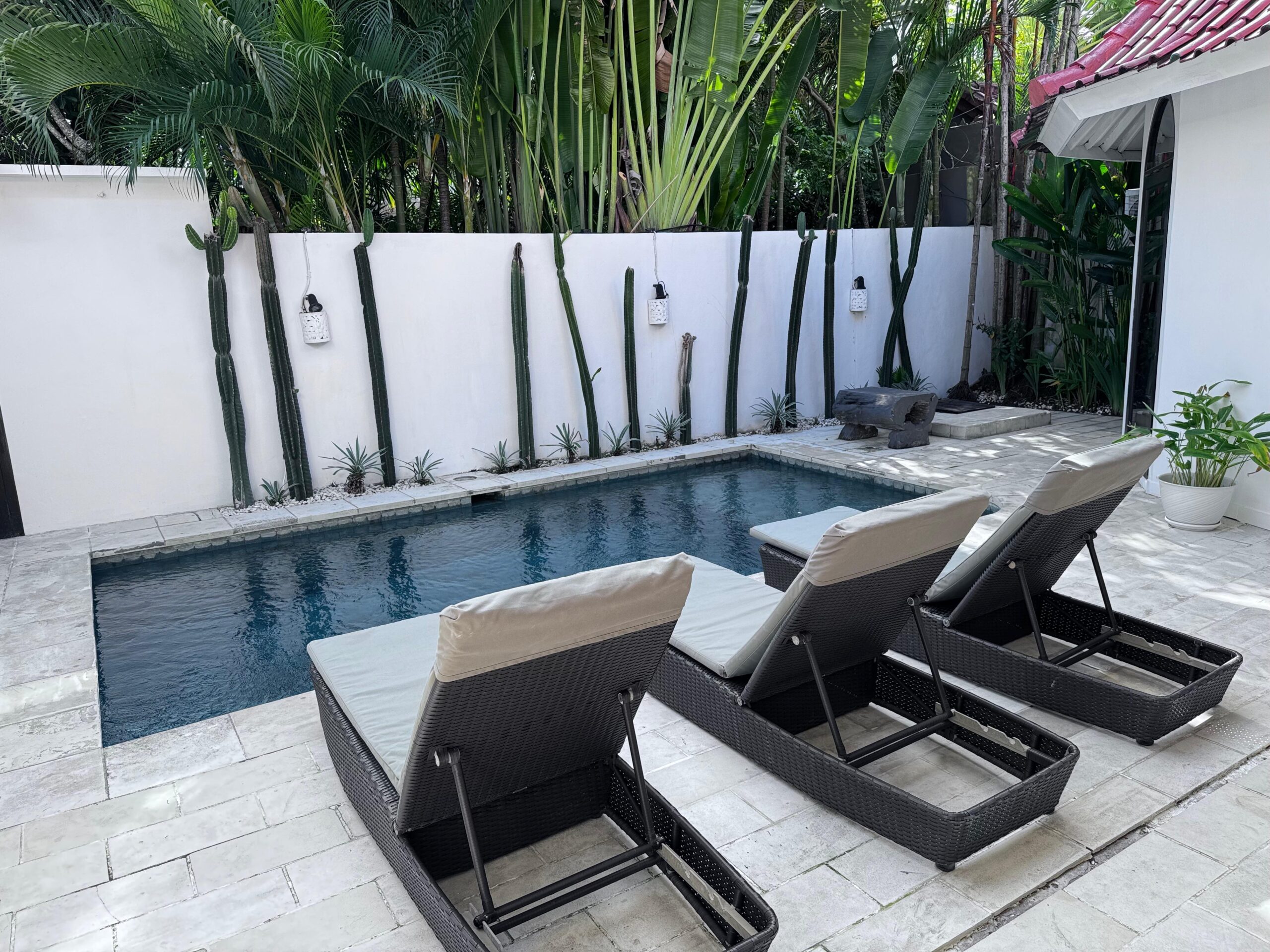 Ersa Villa Seminyak is a beautifully designed 3-bedroom villa that blends modern style with the warmth of a home. Featuring a private swimming pool surrounded by lush tropical gardens, the villa offers bright and spacious open-plan living and dining areas. Each air-conditioned bedroom is designed for ultimate comfort, complemented by a fully equipped kitchen and modern amenities to ensure a relaxing stay. Located just an 8-minute walk to Double Six Beach, famous for its breathtaking sunsets, the villa also provides easy access to Seminyak’s top restaurants, boutiques, and vibrant nightlife. A perfect choice for those seeking privacy, comfort, and a prime location — all in one exceptional Bali escape.