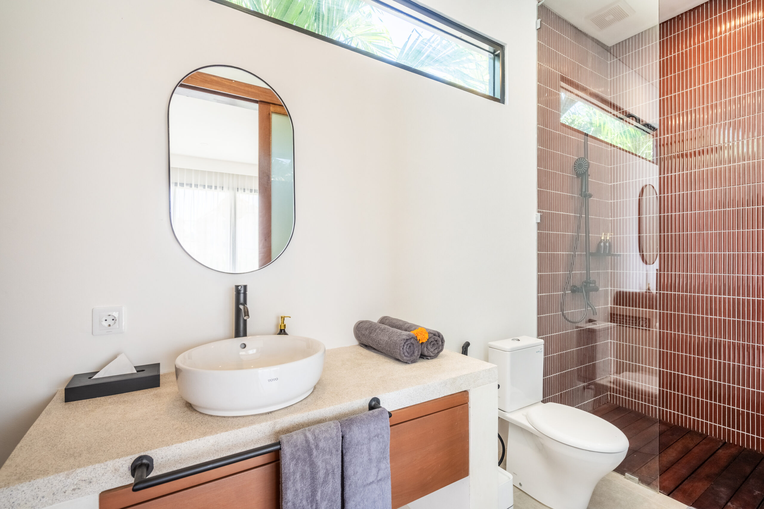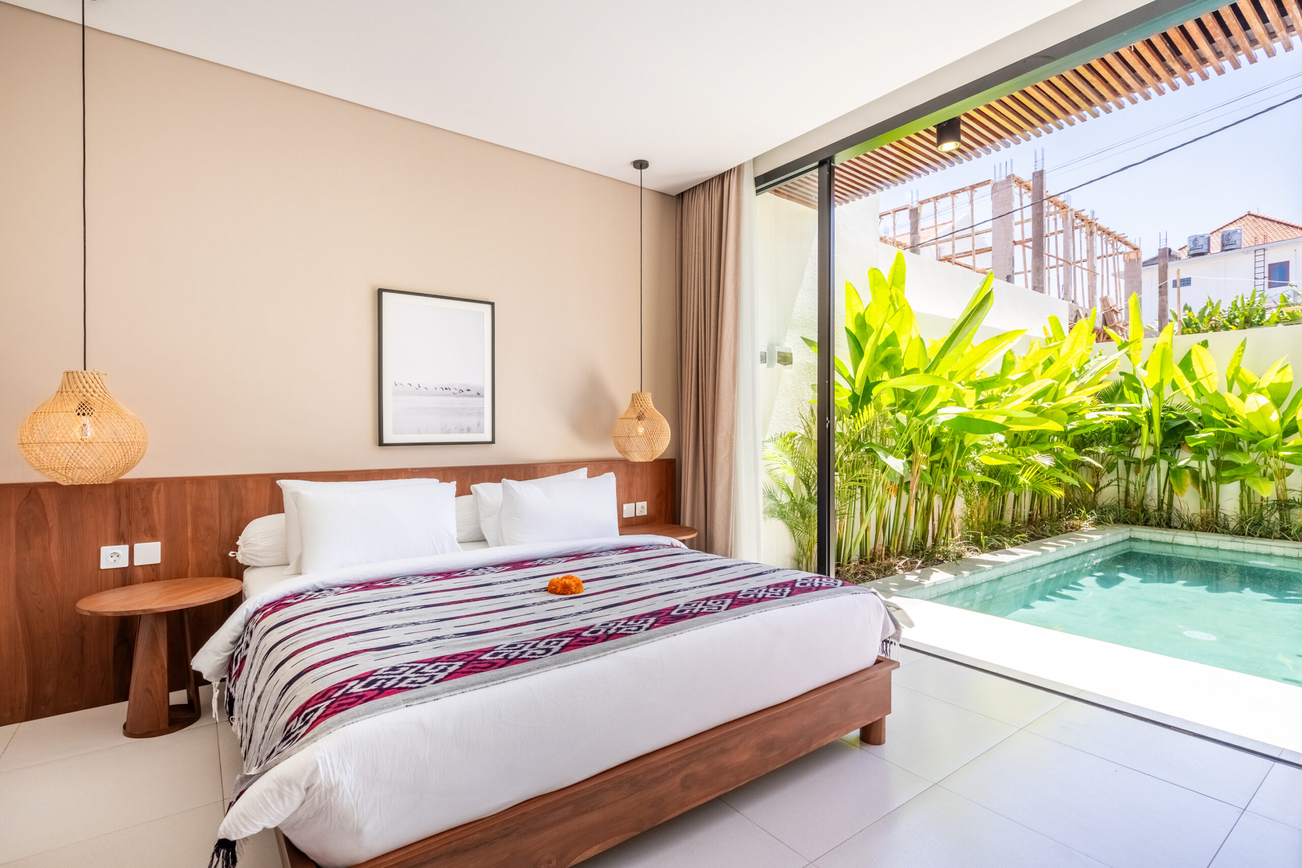 Enjoy a stylish escape in this modern 3-bedroom villa, designed for both comfort and privacy. Each bedroom comes with its own en-suite bathroom, ensuring convenience for every guest. The villa features a private pool, perfect for refreshing swims or relaxing under the sun. Inside, the cozy living room offers an inviting space to unwind or spend quality time together, blending modern design with comfort. Located in the vibrant Tibubeneng area, you’ll have easy access to cafes, beaches, and trendy spots, while still enjoying the tranquility of your own villa. With secure parking and cleaning service twice a week, your stay is made simple and stress-free.